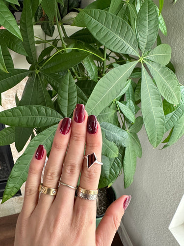 Red Tigers Eye Silver & Platinum Crystal Ring Size 5 S. Africa Kite Shape