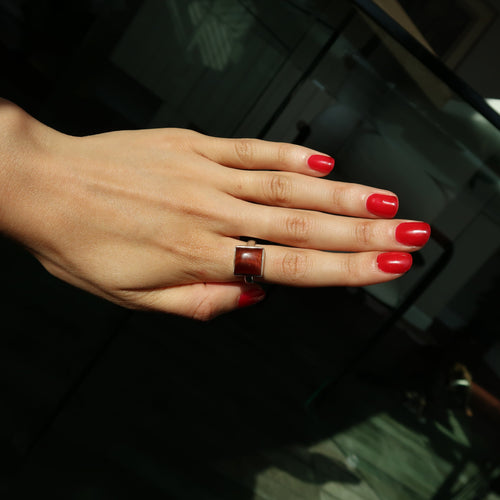 Red Tigers Eye Silver and Platinum Heart Ring From South Africa
