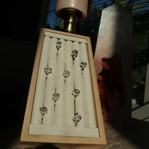 Garnet and Herkimer Diamond Silver & Platinum Crystal Ring from Sri Lanka/USA