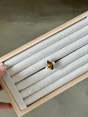 Tigers Eye Silver & Platinum Crystal Ring Size 8 from Australia