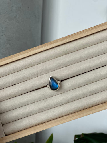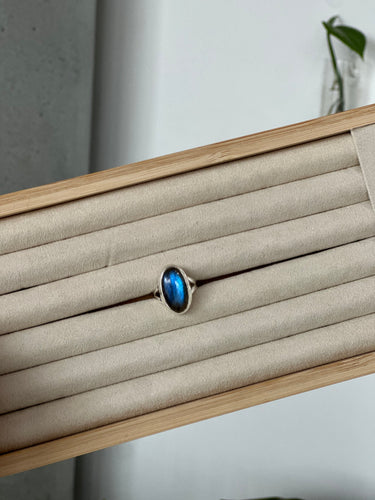 Blue Fire Labradorite Silver & Platinum Crystal Ring Size 6 from Canada