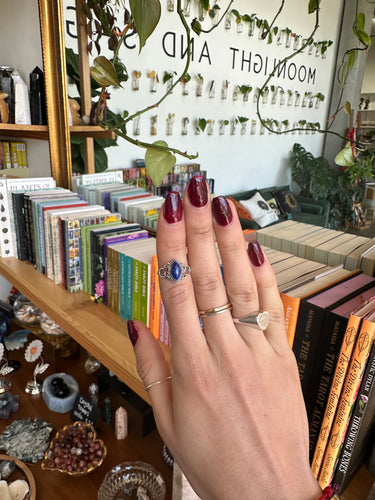 Lapis Ring- Silver & Platinum Crystal Ring Size 4 Afghanistan