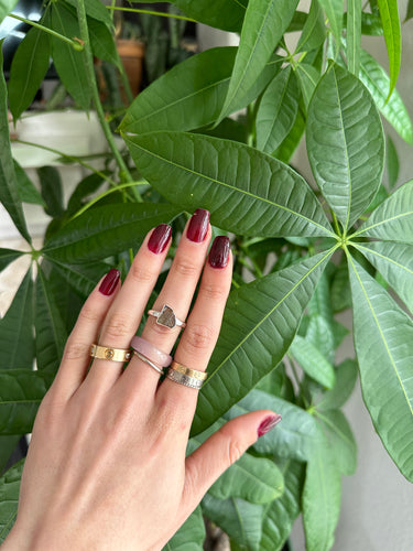 Black Obsidian Sheen Silver - Silver & Platinum Crystal Ring Size 5 Diamond Shape