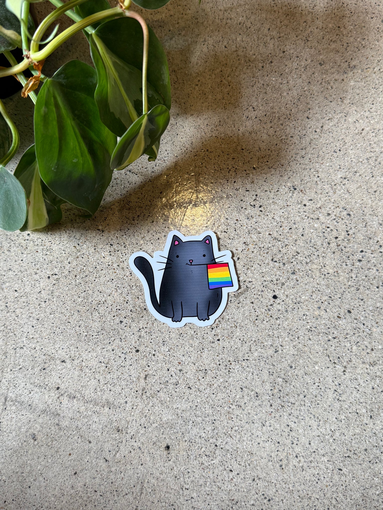 • Load image into Gallery viewer, Pride Black Cat Sticker