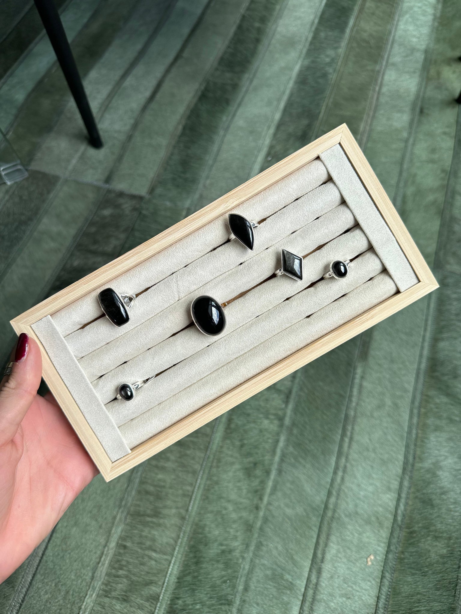 ☾ One Black Obsidian Sheet Crystal ring size 7 from Mexico Flame shape.