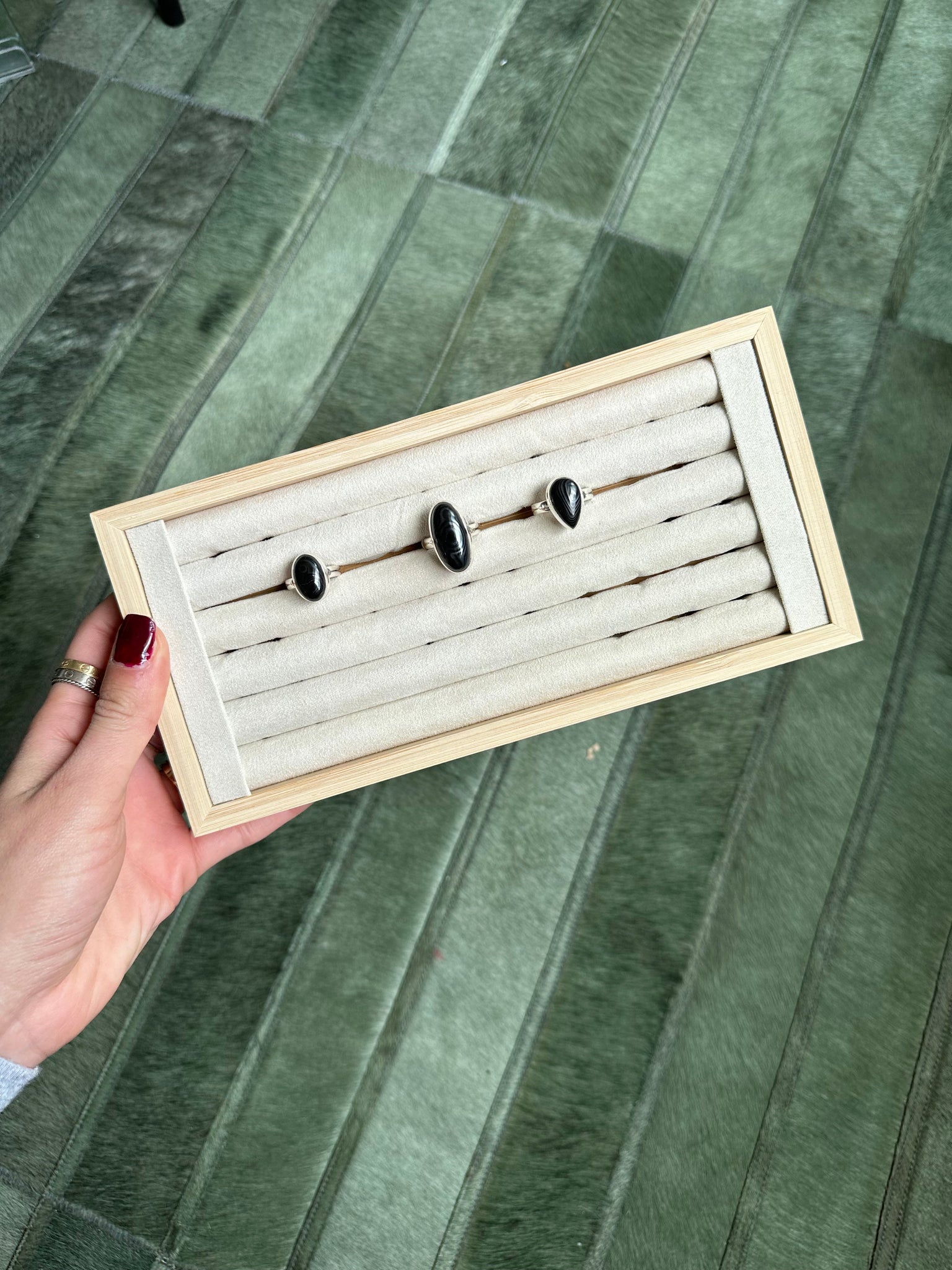 ☾ One Psilomelane Crystal ring size 8. from USA Tear Drop shape.